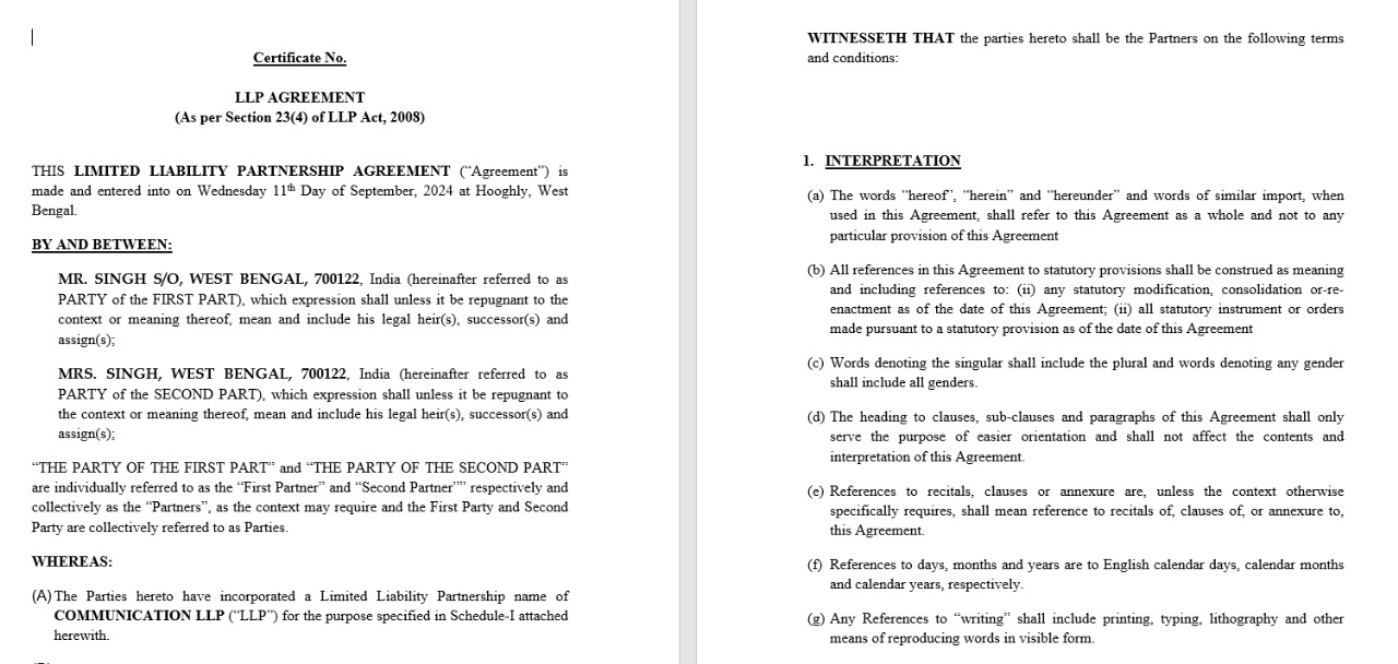 Now secondly, we need documents related to the LLP i.e.,